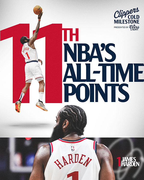 哈登里程碑之夜!常规赛得分超摩西-马龙,现役三甲之列闪耀