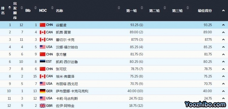 直播车 冬奥会自由式滑雪女子U型场地技巧决赛的比赛打响,在前面资格赛的比赛里,中国选手谷爱凌上演了完美的发挥,第一跳她跳出了93.75分的超高分,第二跳95.50分,两跳无论取那一跳都以第一晋级决赛,另外中国的两名小将张可欣、李方慧也是晋级决赛,吴梦则是比较遗憾无缘决赛。
